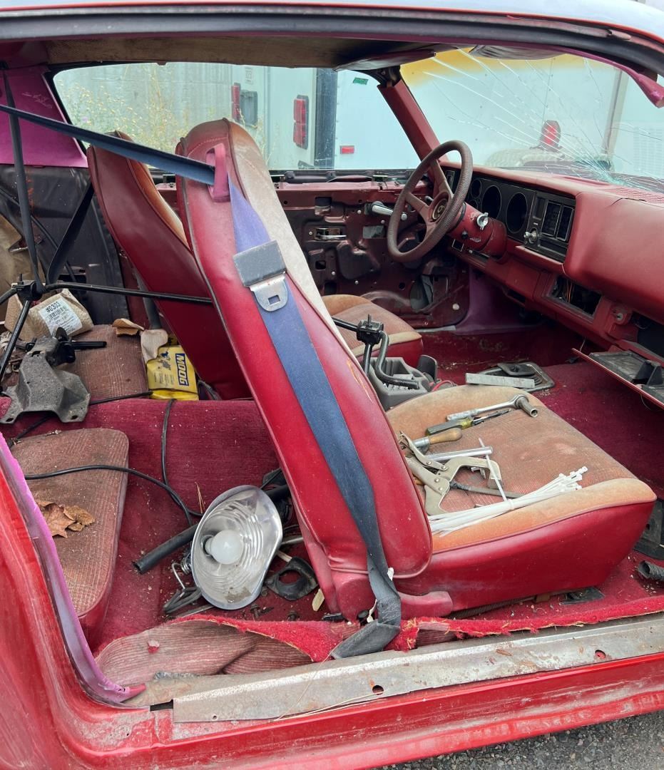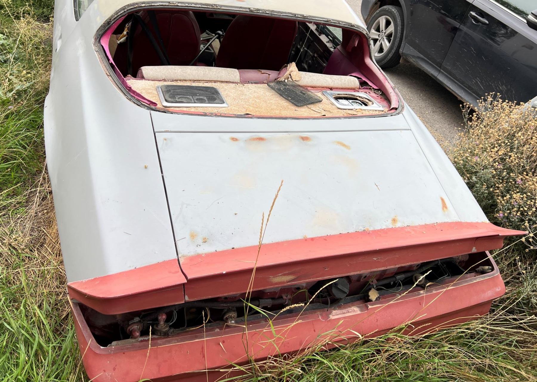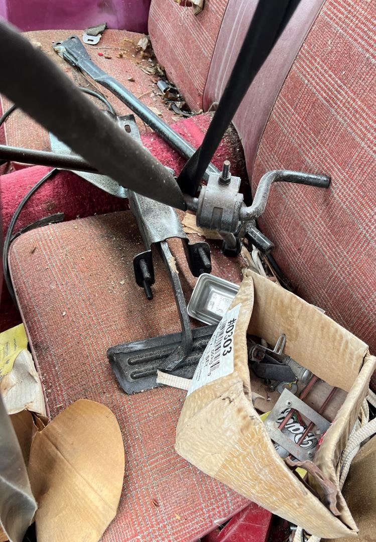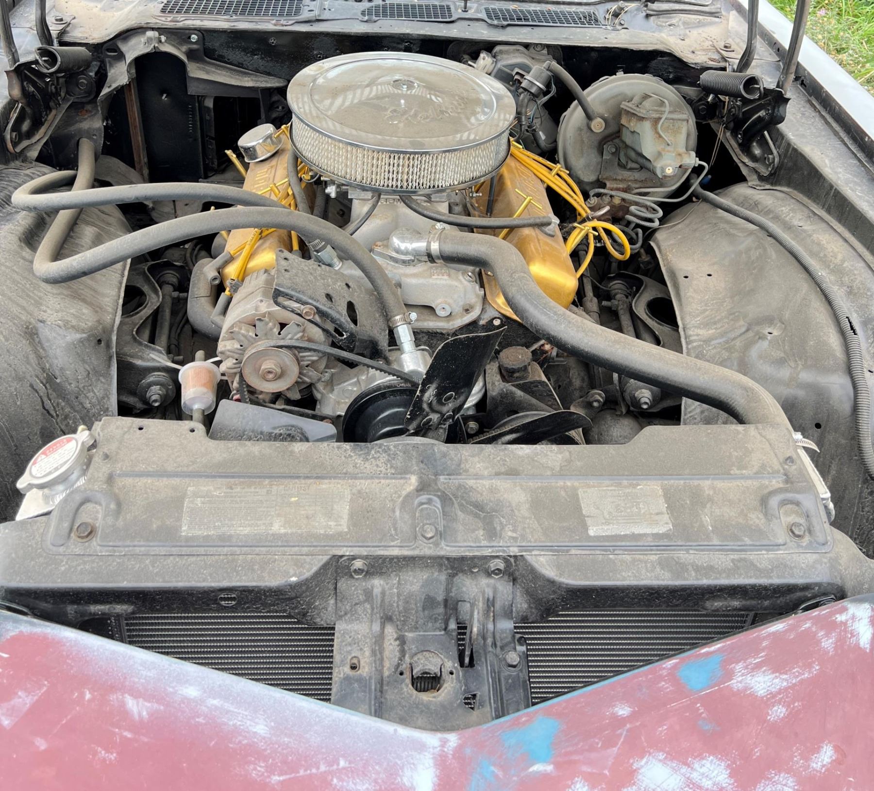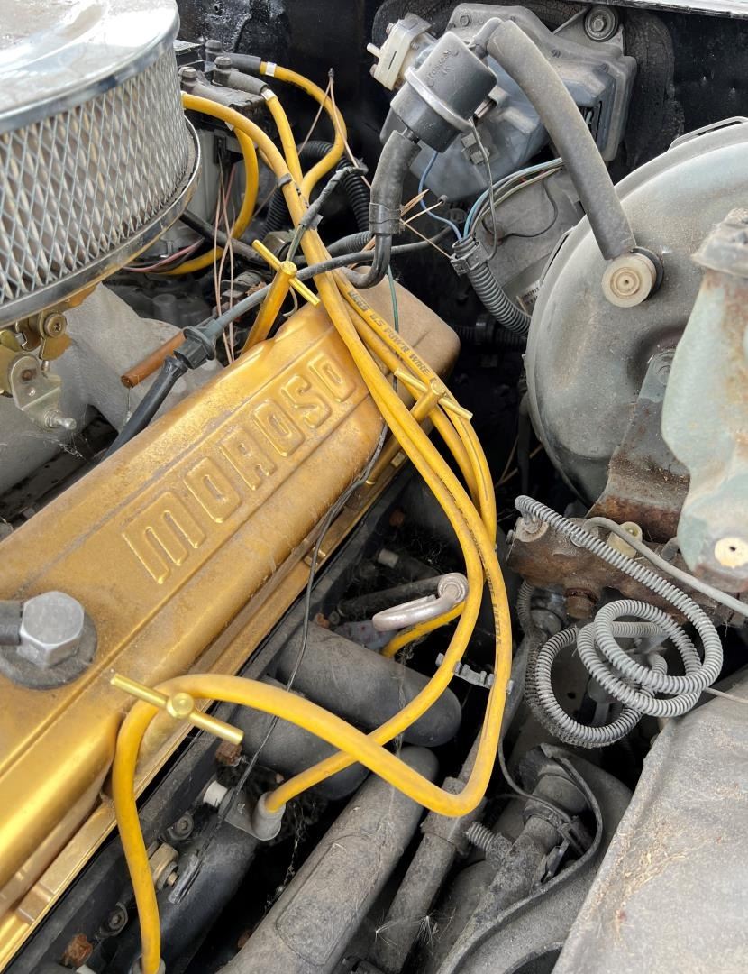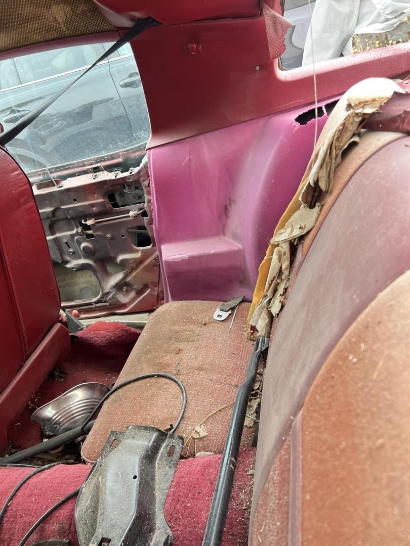 Owner was in the process of restoration when they passed away. New motor, headers, carb, aluminum radiator. Car has extra parts scattered throughout as show. Trunk also has parts but we cannot open. No rust holes, floor pans are good. No transmission. Ready to be finished off. No rear windshield included. No Title. Sold as-is, must be removed from our property in a timely manner, pickup is preferred, it is buyers responsibility to arrange transport. Original Door Panels and Hood Scoop Also included but not shown.