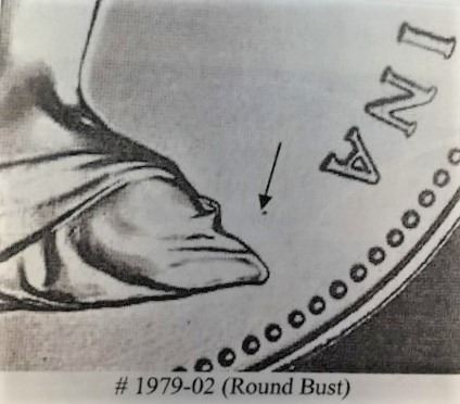 Two varieties of half-dollar coins were issued in 1979, more than one uncirculated proof-like sets are available for that year. The difference between the coins can be seen on finishing at the right side of the Queen's bust. Sometimes, it is rounded and at other times it is more pointed.