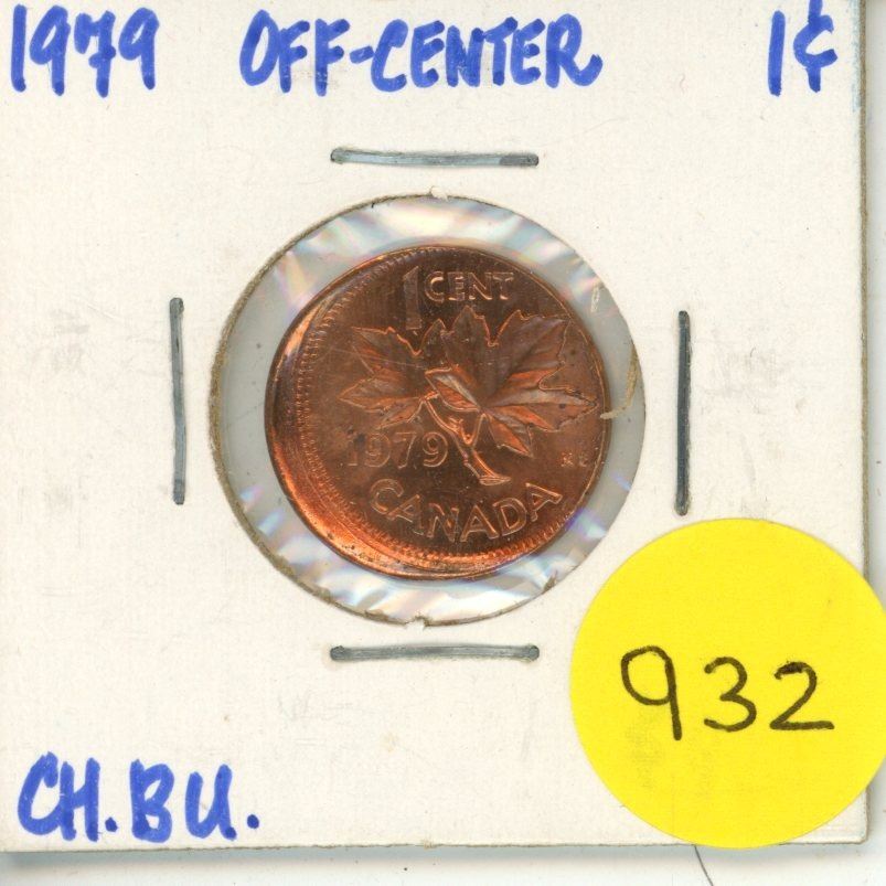 1979 Canadian Struck Off-Centre Error Cent. Choice BU Red.