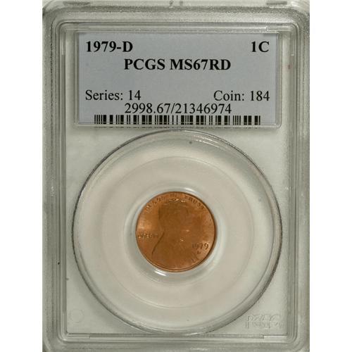 <B>1979-D 1C MS67 Red PCGS.</B></I> Well struck and intensely lustrous, with a lovely coating of sunset-red patina over the center of each side and pleasing yellow-golden accents at the peripheries. Carefully preserved and nearly free of surface marks. Population: 15 in 67 Red, 0 finer (3/07).<BR><BR><b>Shipping:</b> Coins & Currency (<a target="_blank" href="http://www.heritageauctions.com/common/shipping.php">view shipping information</a>)