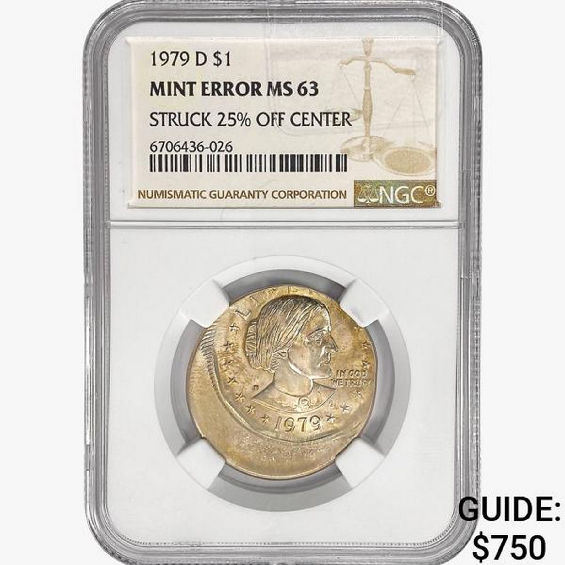 1979-D SBA $1 NGC MS63 Mint Error Struc 25% Off Cn