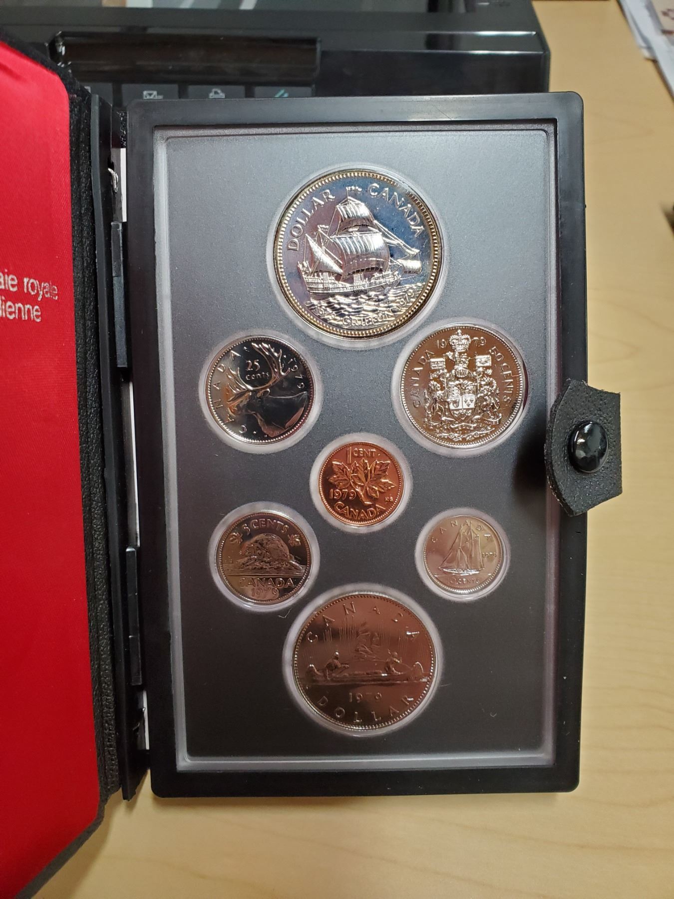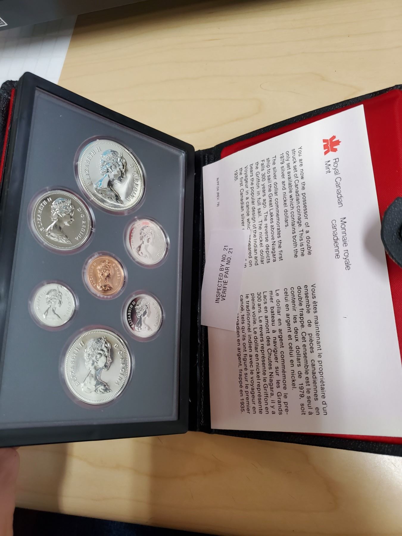 1979 Double Dollar Specimen Set. 7-coin set includes Griffon Silver Dollar. Housed in its original case of issue.