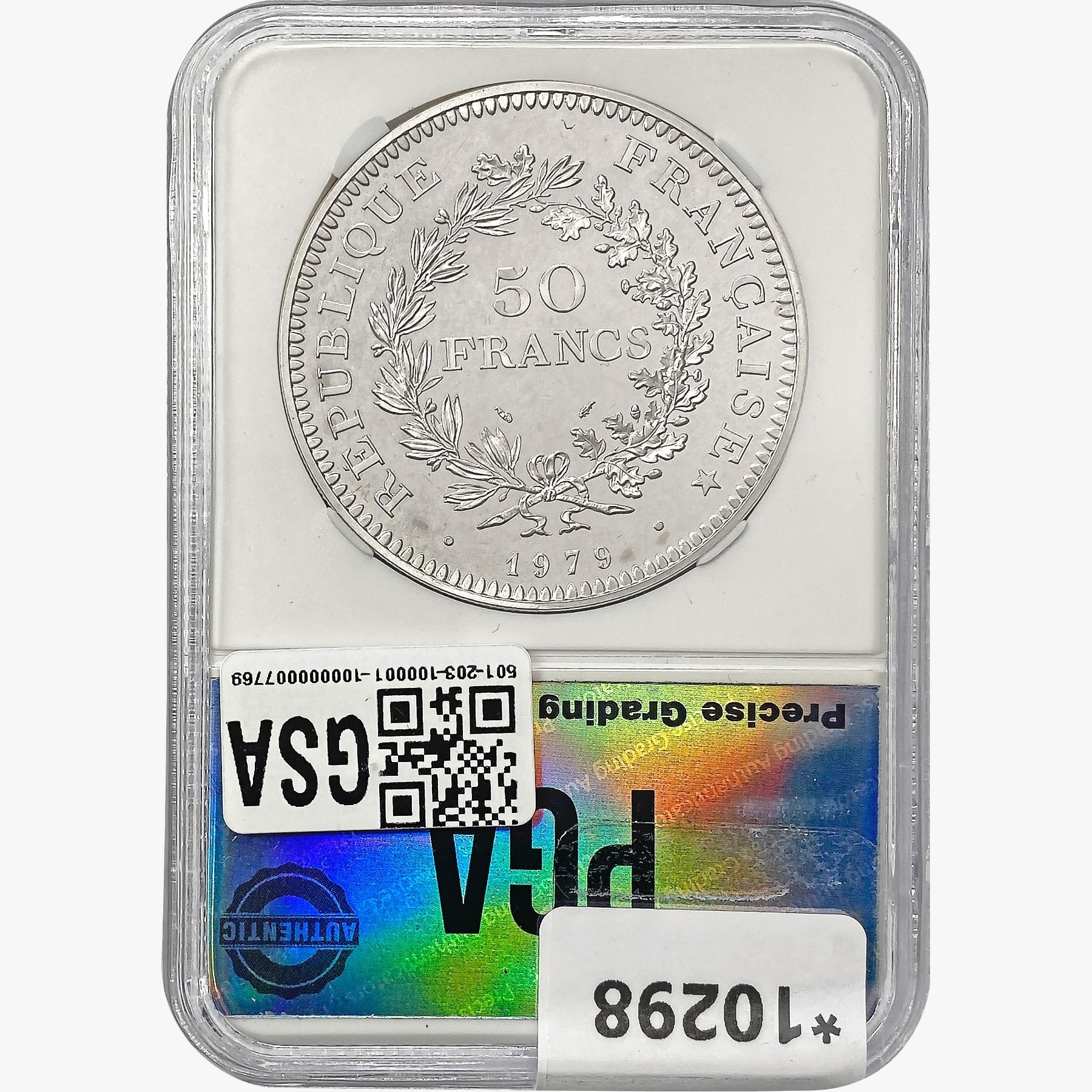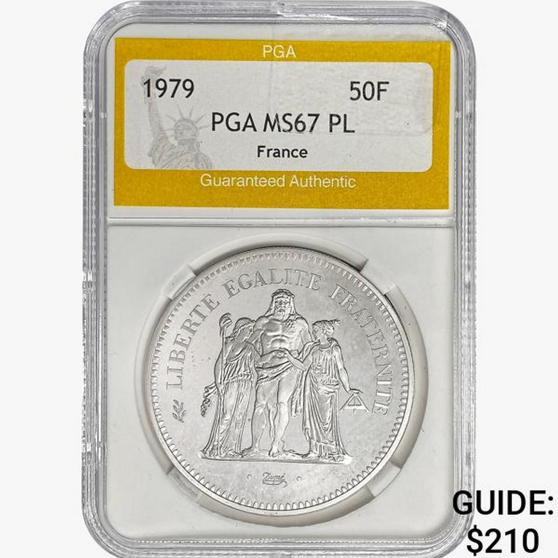 1979 France 50 Francs .8681oz. Silver PGA MS67 PL