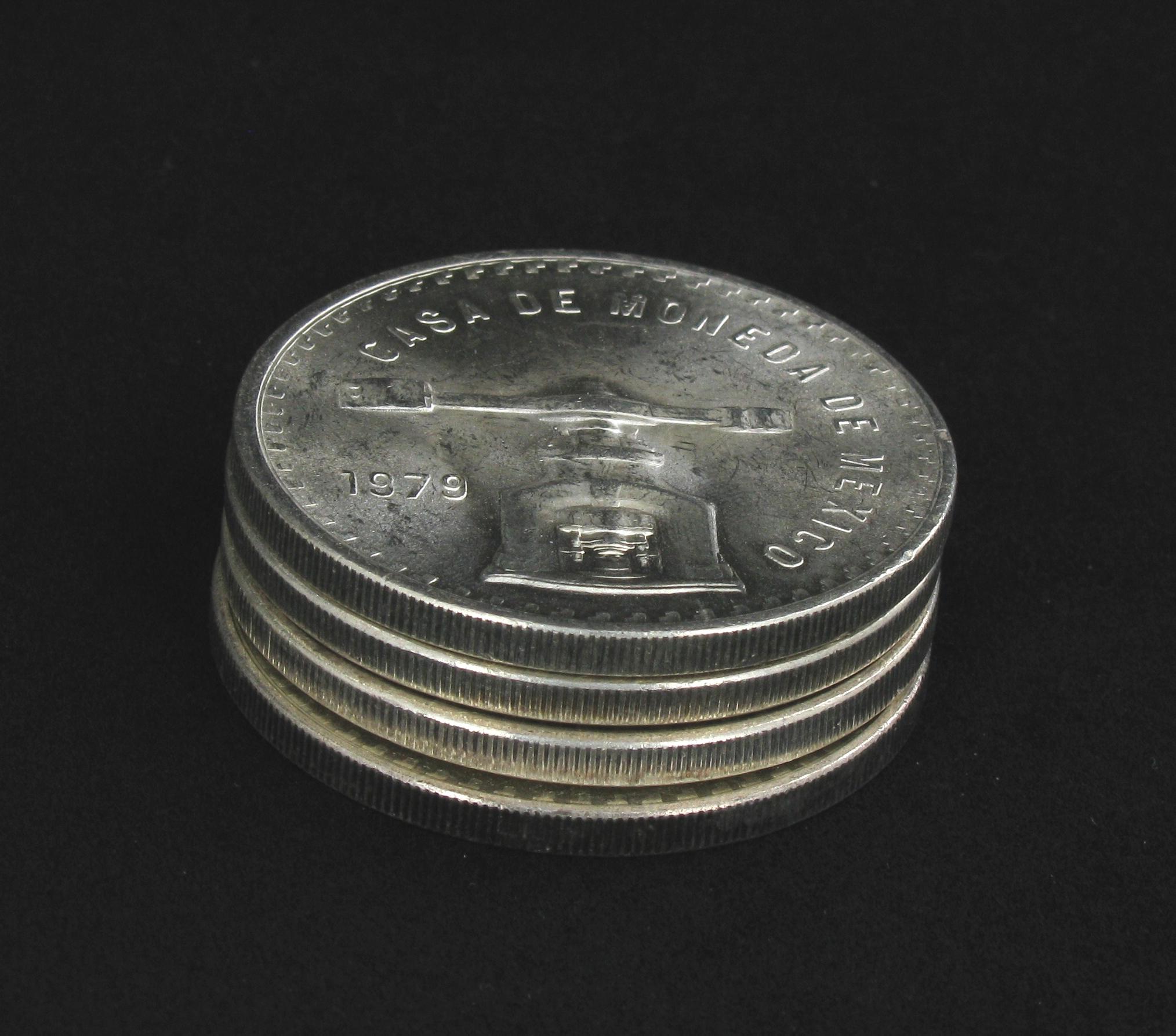 1979 Mexico Silver Onza Unsearched Stack of 4 All BU 3.7 Ounces Silver! (COI-5239)