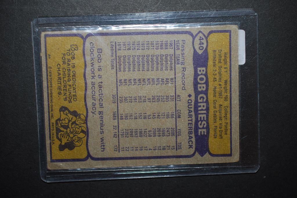 1979 NFL Bob Griese Miami Dolphins Football Trading Card; EST. $5-10