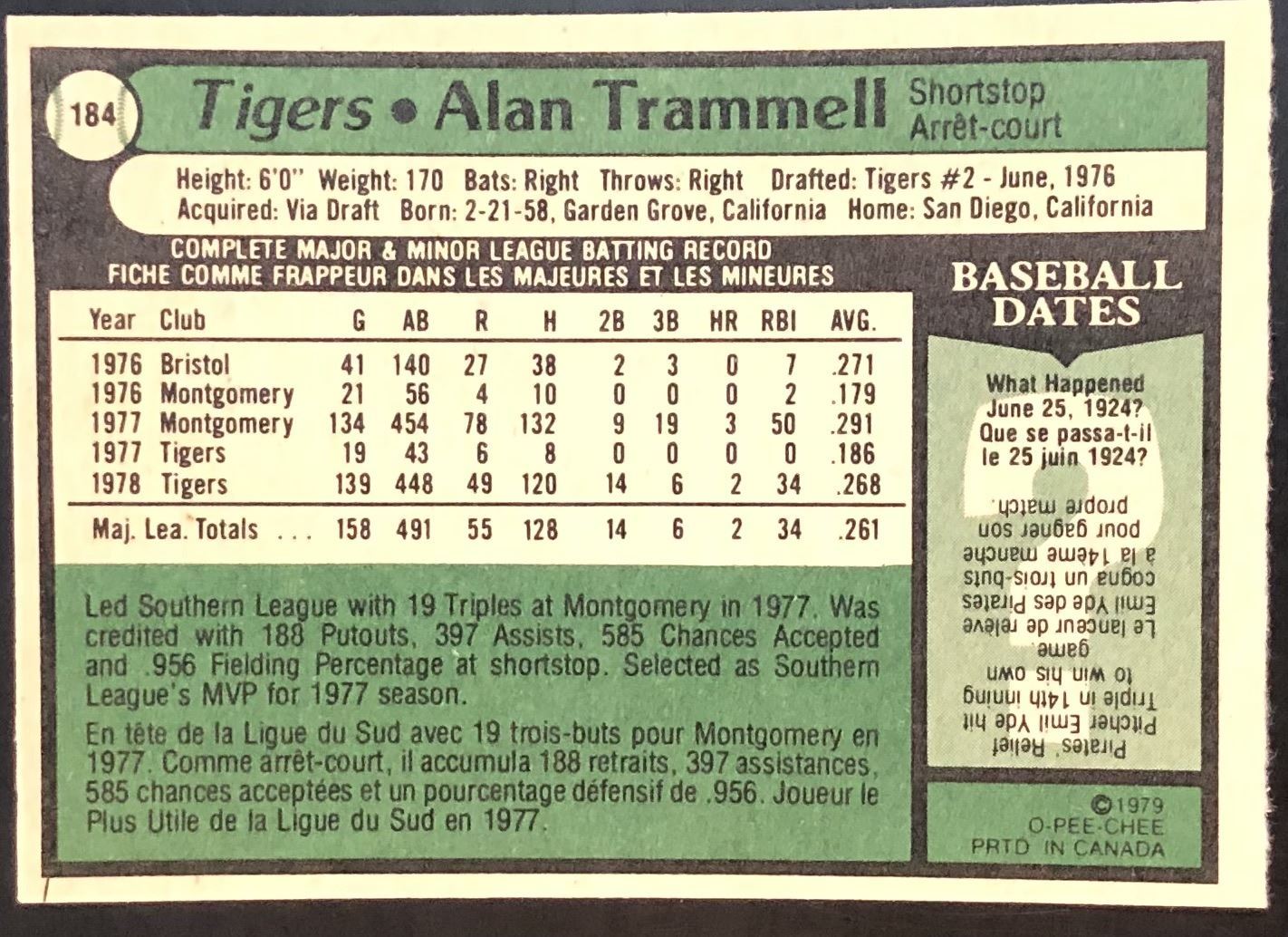 Card #184 MLB, baseball, vintage, OPC, hall of fame