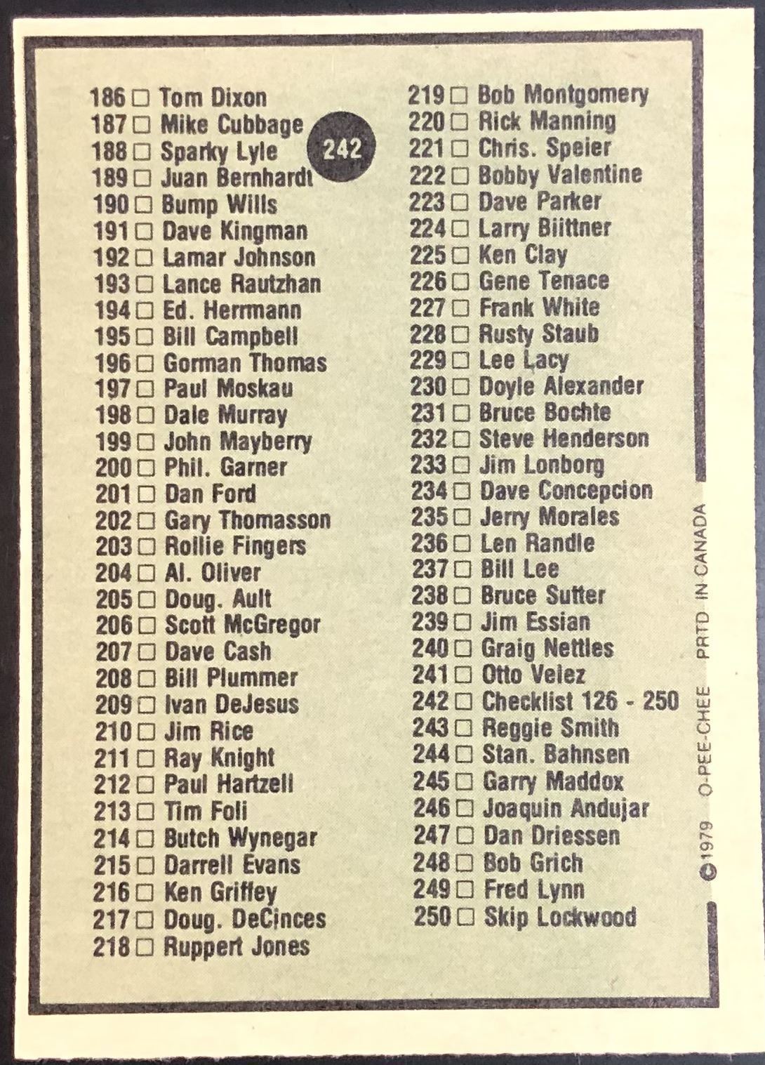 Card #242 MLB, baseball, vintage, OPC, hall of fame