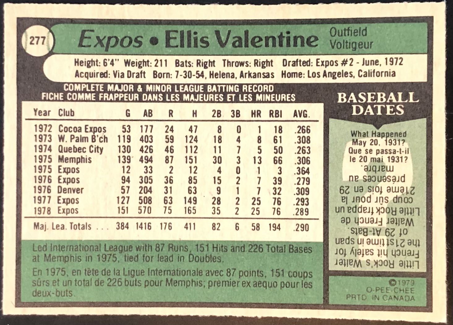 Card #277 MLB, baseball, OPC, vintage