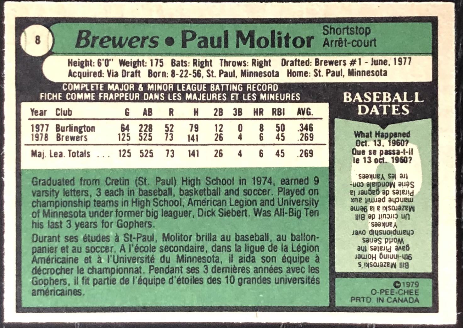 Card#8 vintage, MLB, baseball, OPC, hall of fame