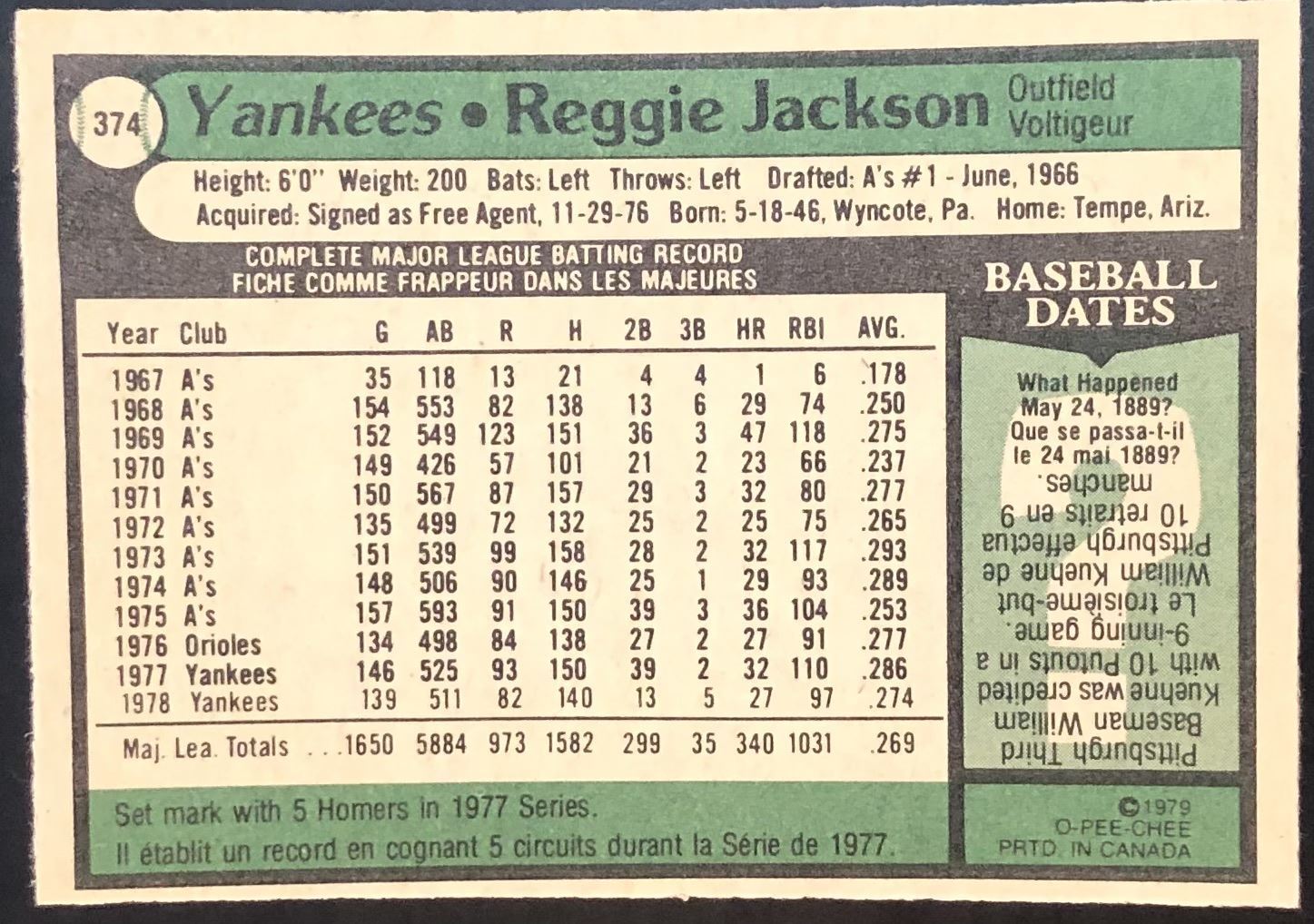 Card #374 MLB, baseball, vintage, OPC, hall of fame