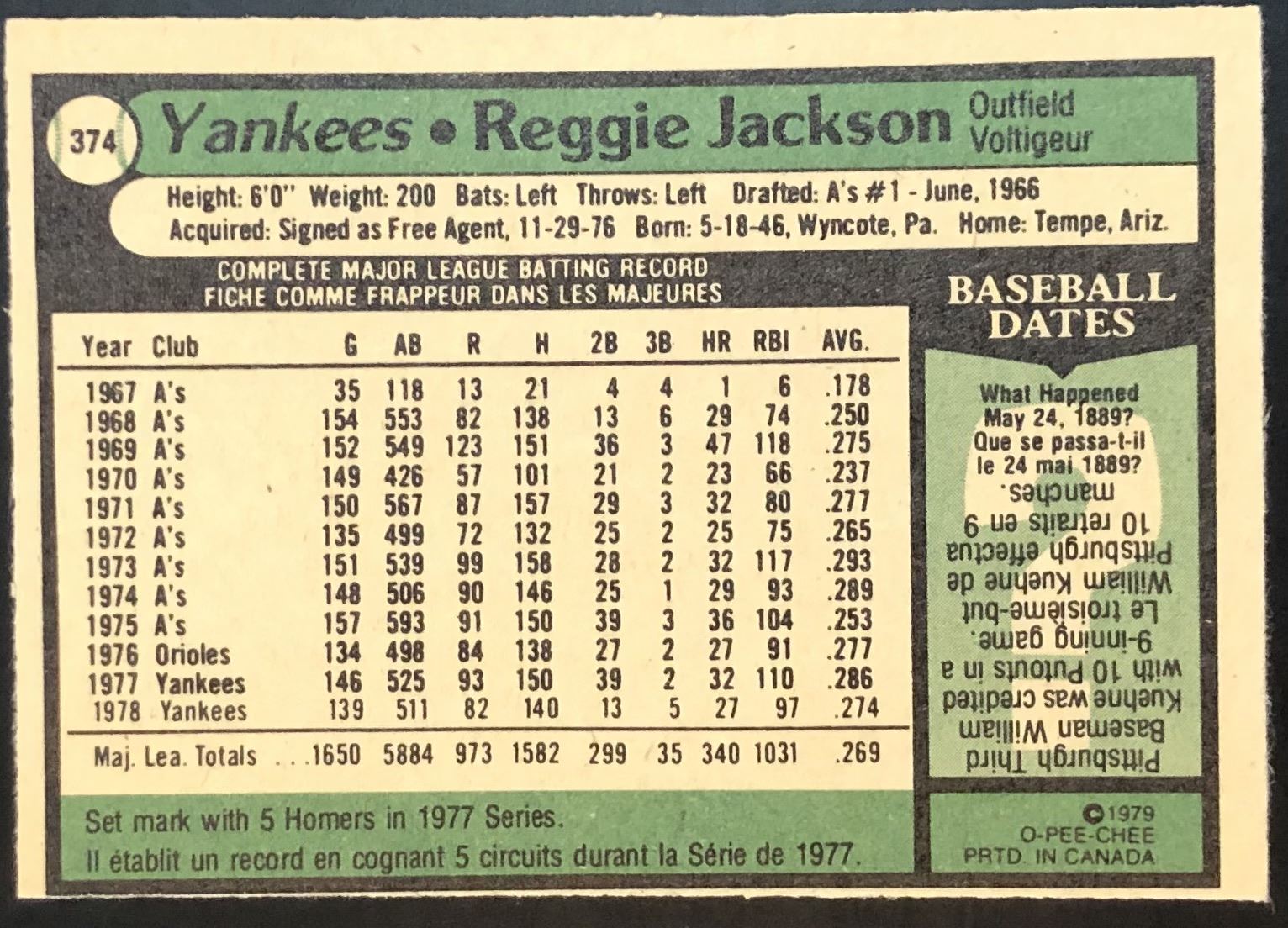 Card #374 MLB, baseball, OPC, hall of fame, vintage