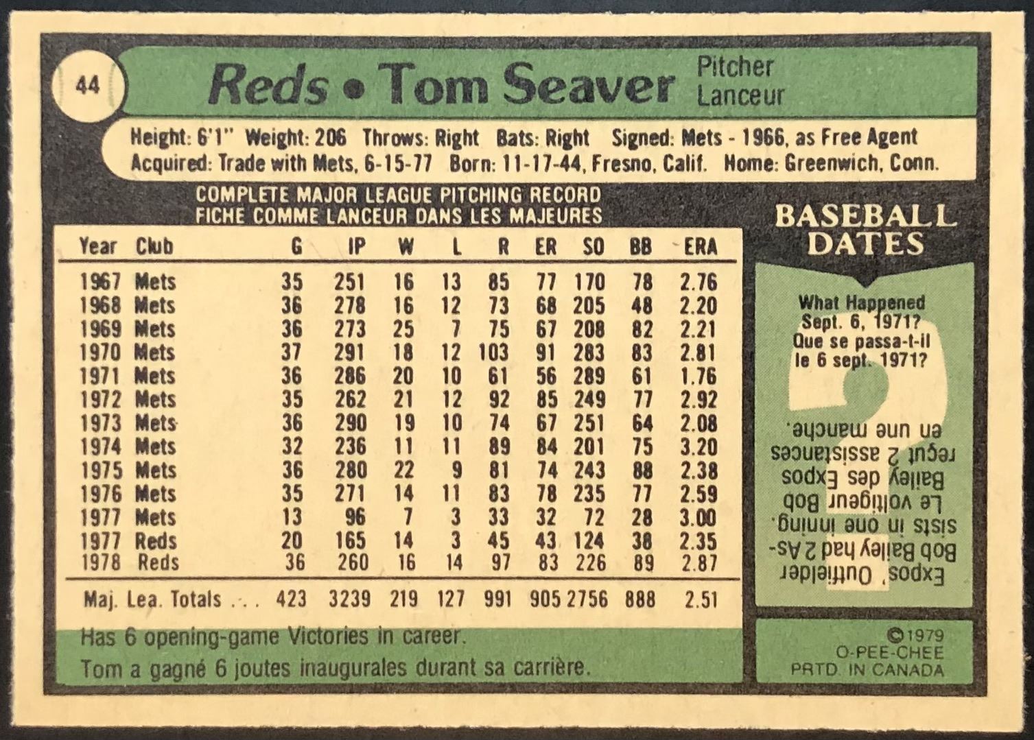 Card #44 MLB, baseball, OPC, hall of fame, vintage