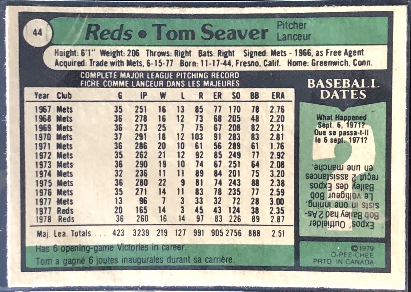 Card #44 MLB, baseball, OPC, vintage, hall of fame