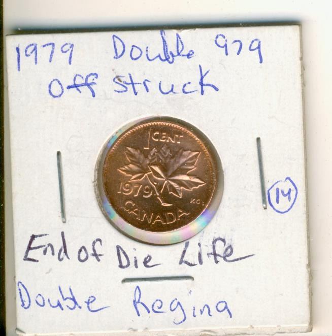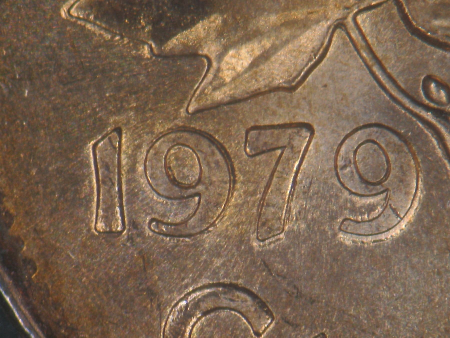 1979 One Cent - Double 979/ Off struck/ End of die life