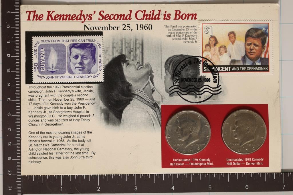 KENNEDY'S 2ND CHILD IS BORN ON INFO CARDS WITH STAMPS