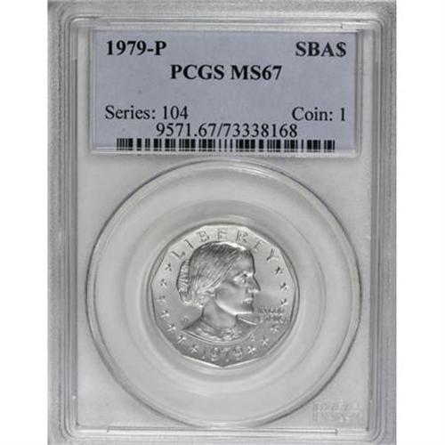 <B>1979-P SBA$ MS67 PCGS.</B></I> PCGS Population (72/1). NGC Census: (128/4). Mintage: 360,222,016. Numismedia Wsl. Price for NGC/PCGS coin in MS67: $170. (#9571)<BR><BR><b>Shipping:</b> Coins & Currency (<a target="_blank" href="http://www.heritageauctions.com/common/shipping.php">view shipping information</a>)