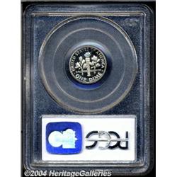 1979-S 10C Type One PR70 Deep Cameo PCGS. This Filled Mintmark is the more frequently seen of the two variants of this year. Brilliant throughout, the fields are exceptionally deep in their mirrored reflectivity and the devices are heavily frosted, which gives the coin a pronounced two-toned contrast. <BR><BR><B>Important notice:</B> Heritage usually auctions material at the rate of 200-250 lots per hour. On some occasions eBay Live bid software or the Internet may not be able to keep up with the pace of the auction. We recommend placing a realistic absentee bid now as insurance to avoid disappointment. Occasionally the auctioneer may eliminate or reject an eBay Live bid, and the auctioneer may also reopen a lot after the close of the eBay live bidding (usually because we missed an audience bid), and may reject your bid even if it shows you as the winning bidder. By bidding via eBay Live, you agree that Heritage may award the lot to another bidder at its sole discretion under the circumstances described above or any other reasonable circumstances. Since eBay bids are not shown to us until we open the lot on the floor, we treat those bids just like floor bids. In most cases the floor responds before the eBay bid is presented to us, due to Internet lag time, so for consistency we have made it a policy that floor bids are always considered first over tie eBay live bids. Also please note that all Heritage lots purchased through eBay Live carry a 20% Buyer's Premium. Please make sure you read the Terms and Conditions before you bid. <BR><BR><B>IMPORTANT ANNOUNCEMENT ABOUT RESERVES:</B> Heritage now divulges all reserves on its web site 7 days before every auction. If you want to know whether the reserve on this lot has been met, and if not, what the reserve amount is, please visit this lot page on the HeritageCoin.com web site, or email: bid@HeritageGalleries.com