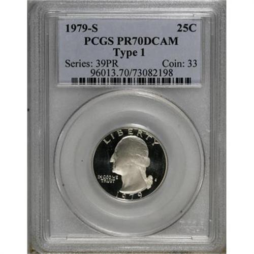 <B>1979-S 25C Type One PR70 Deep Cameo PCGS.</B></I> PCGS Population (103/0). NGC Census: (3/0). Numismedia Wsl. Price for NGC/PCGS coin in PR70: $130. (#96013)<BR><BR><b>Shipping:</b> Coins & Currency (<a target="_blank" href="http://www.heritageauctions.com/common/shipping.php">view shipping information</a>)
