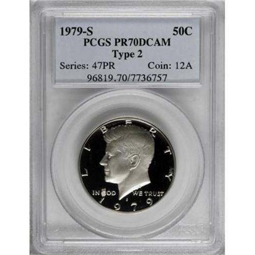 <B>1979-S 50C Type Two PR70 Deep Cameo PCGS.</B></I> Fully frosted devices seem to float above highly reflective, inky-black fields. A virtually unimprovable specimen. Population: 40 in 70 Deep Cameo (8/07). <BR><BR><b>Shipping:</b> Coins & Currency (<a target="_blank" href="http://www.heritageauctions.com/common/shipping.php">view shipping information</a>)