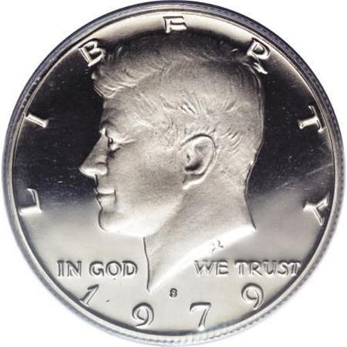 <B>1979-S 50C Type Two PR70 Deep Cameo PCGS.</B></I> By 1979 the old S mintmark punch for proof Kennedys was producing only mushy blobs, and accordingly the Mint introduced a new punch with a clear S, used on a small percentage of 1979-S (Type Two) and all 1980-S coinage. Type Two Kennedys in the unimprovable PR70 Deep Cameo grade are elusive, and one of several issues in the later clad proof half dollar series that have turned out to be keys to a complete set. This piece shows remarkably reflective jet-black fields, with exceptional silvery mint frost covering the devices. Population: 41 in 70 Deep Cameo, 0 finer (10/07).<BR><I>From The Kallenberg #1 PCGS Registry Set Of Proof Half Dollars.</B></I><BR><BR><b>Shipping:</b> Coins & Currency (<a target="_blank" href="http://www.heritageauctions.com/common/shipping.php">view shipping information</a>)