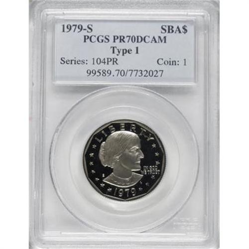 <B>1979-S SBA$ Type One PR70 Deep Cameo PCGS.</B></I> . PCGS Population (303/0). NGC Census: (41/0). Numismedia Wsl. Price for NGC/PCGS coin in PR70: $175. (#99589)<BR><BR><b>Shipping:</b> Coins & Currency (<a target="_blank" href="http://www.heritageauctions.com/common/shipping.php">view shipping information</a>)