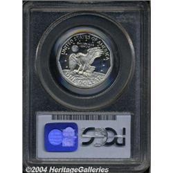 <B>1979-S<SBA$> Type Two PR70 Deep Cameo PCGS.</B></I> An essentially brilliant example that exhibits spectacular contrast between the icy devices and the mirrored fields. The 'clear mintmark' Type Two is many times tougher than its 'filled mintmark' Type One counterpart. Population: 44 in 70, 0 finer (3/04). <BR><BR><B>Important notice:</B> Heritage usually auctions material at the rate of 200-250 lots per hour. On some occasions eBay Live bid software or the Internet may not be able to keep up with the pace of the auction. We recommend placing a realistic absentee bid now as insurance to avoid disappointment. Occasionally the auctioneer may eliminate or reject an eBay Live bid, and the auctioneer may also reopen a lot after the close of the eBay live bidding (usually because we missed an audience bid), and may reject your bid even if it shows you as the winning bidder. By bidding via eBay Live, you agree that Heritage may award the lot to another bidder at its sole discretion under the circumstances described above or any other reasonable circumstances. Since eBay bids are not shown to us until we open the lot on the floor, we treat those bids just like floor bids. In most cases the floor responds before the eBay bid is presented to us, due to Internet lag time, so for consistency we have made it a policy that floor bids are always considered first over tie eBay live bids. Also please note that all Heritage lots purchased through eBay Live carry a 20% Buyer's Premium. Please make sure you read the Terms and Conditions before you bid.