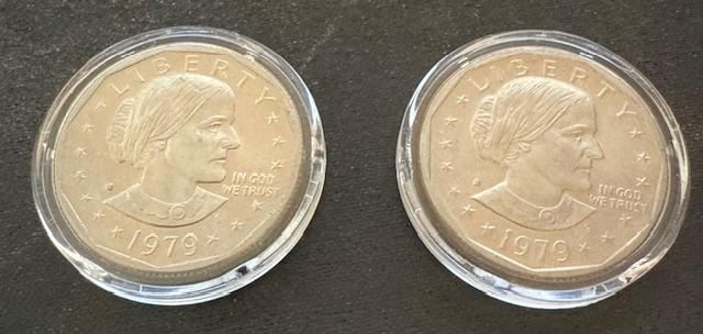 1979 S SUSAN B. ANTHONY (SBA) $1 One DOLLAR COIN Two Coins
