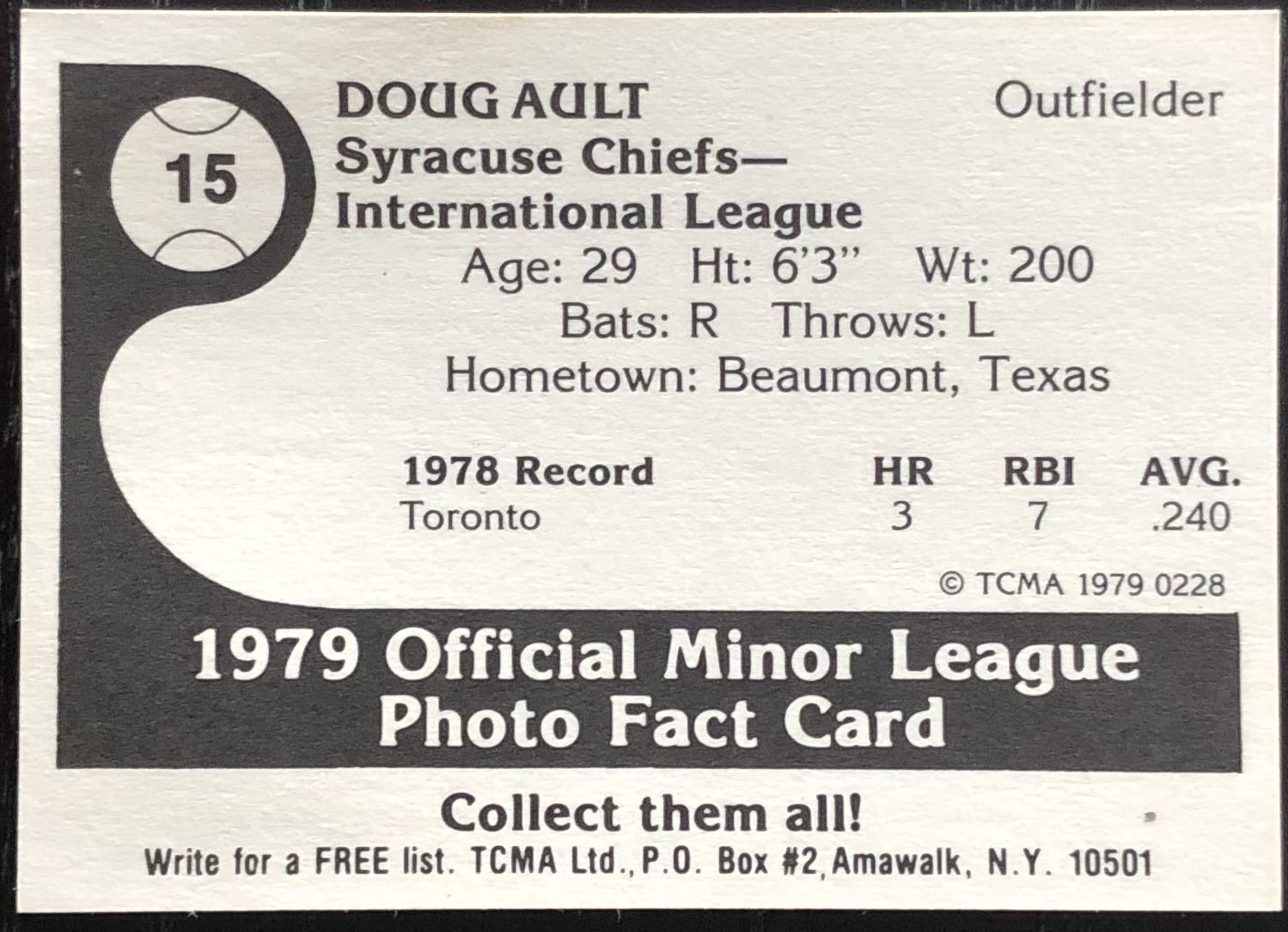 Card #15 MLB, baseball, vintage, regional, rookie, MiLB