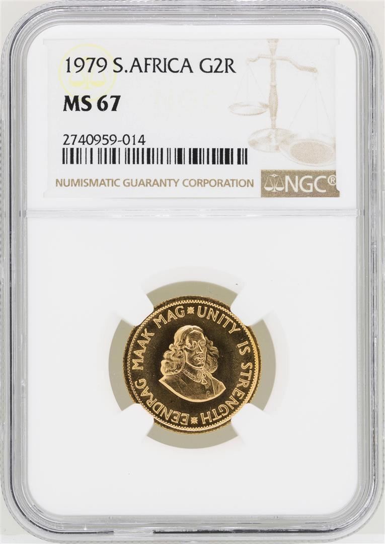 One 1979 South Africa 2 Krugerrand Gold Coin NGC MS67. NGC Certified.