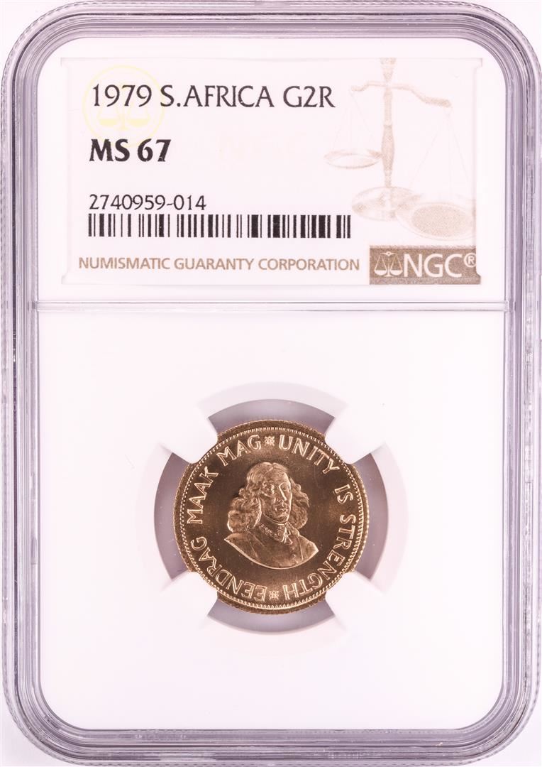 One 1979 South Africa 2 Rand Gold Coin NGC MS67. NGC Certified.