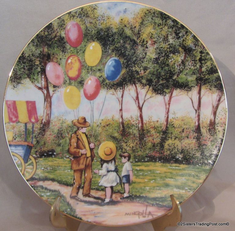 8 1/2" plate, dated 1979 'The Balloon Man' from Calhoun's Plate Collectors Club. Painting by Dominic John Mingolla. In original box, does not have paperwork. (Please see images for details).
