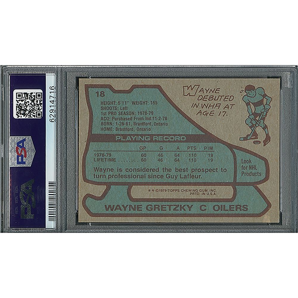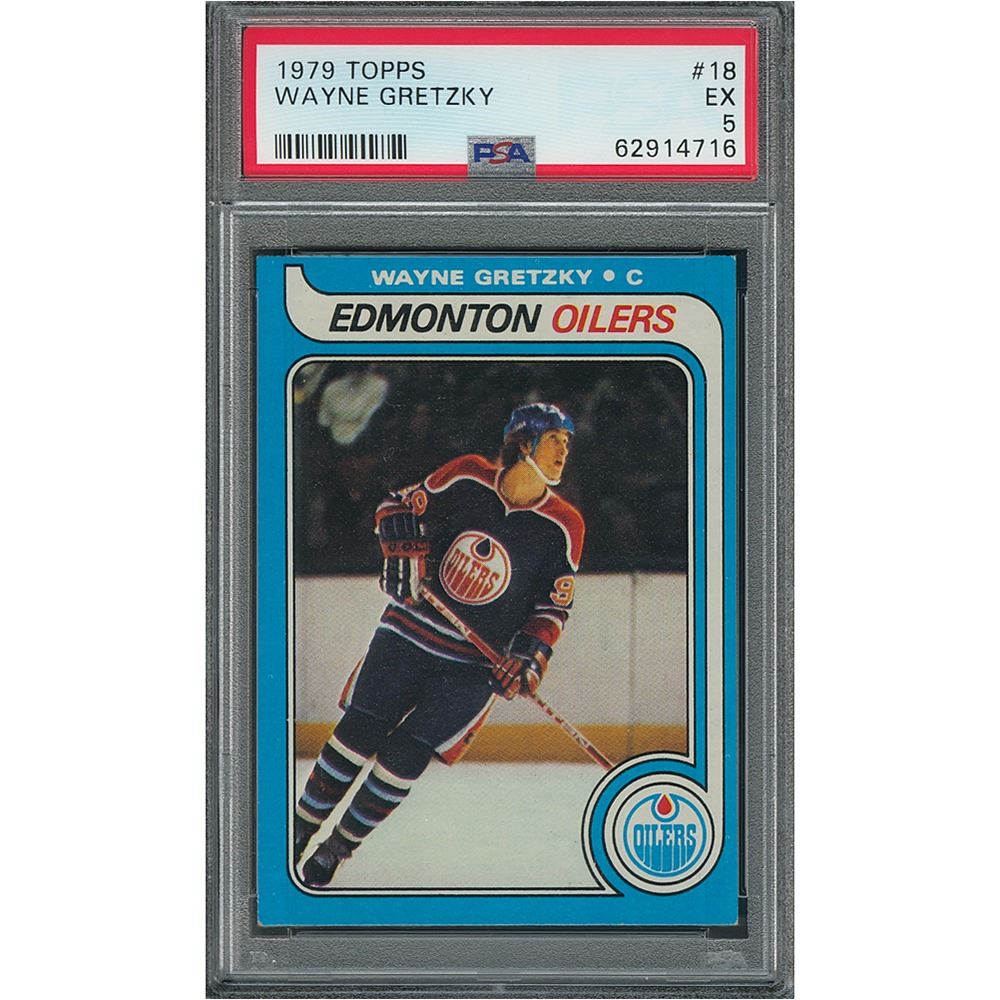 Graded by PSA EX 5. An excellent example of Wayne Gretzky's rookie card, with great colors, gloss, and registration. This iconic card shows the budding superstar—billed as "the best prospect to turn professional since Guy Lafleur"—in his first year with the Edmonton Oilers, ready to turn hockey on its head. In his debut season at just 19 years old, Gretzky tied for the league-lead in points and was awarded the Hart Memorial Trophy as the NHL's MVP. He would go on to achieve greatness as the most dominant player of all-time, setting scoring records that will never be broken. Gretzky was inducted into the Hockey Hall of Fame immediately upon retirement, and his number '99' was retired league-wide.