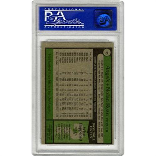 <B>1979 Topps Nolan Ryan #115 PSA Mint 9.</B></I> The undisputed king of the no-hitter and the strikeout, appears here for his entry in the 1979 Topps issue. At the time of this card's issue Ryan had already registered four of his seven no-hitters.<BR><BR><b>Shipping:</b> Sportscard (<a target="_blank" href="http://www.heritageauctions.com/common/shipping.php">view shipping information</a>)