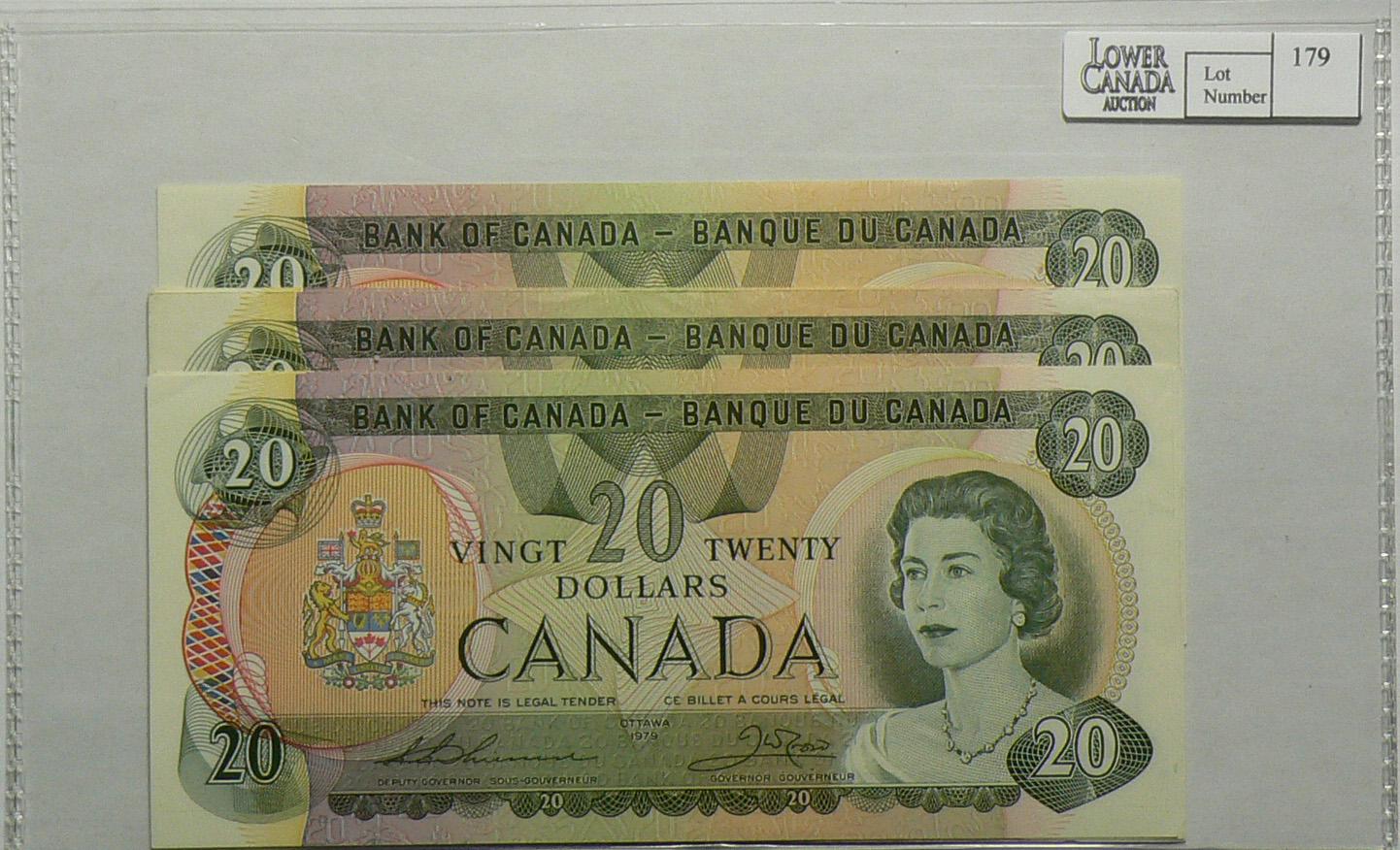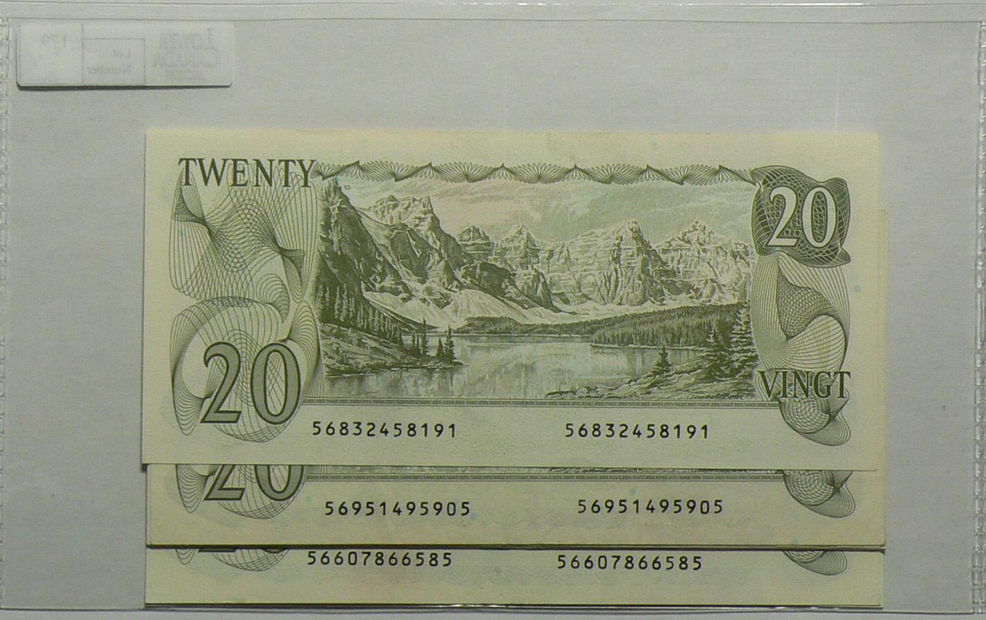 1979 Twenty Dollars Lot, BC-54c(1) & BC-54c-i(12), EF to UNC, Thiessen Crow, serial various. Lot of