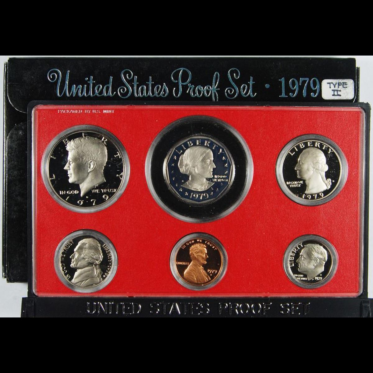 1979 Type II United States Mint Proof Set. The 1999 United States Mint Silver Proof Set contains all 9 circulating coins in stunning proof condition displayed in two protective lenses. Each of these 1999-dated coins bears the "S" mint mark of the United States Mint at San Francisco. The half-dollar, quarters and dime are struck in 90% silver, generally referred to as "coin silver." The coins included in this set are: * (5) State Quarters (honoring Delaware, Pennsylvania, New Jersey, Georgia and Connecticut), * (1) Kennedy half-dollar, * (1) Roosevelt dime, * (1) Jefferson nickel, * (1) Lincoln cent.