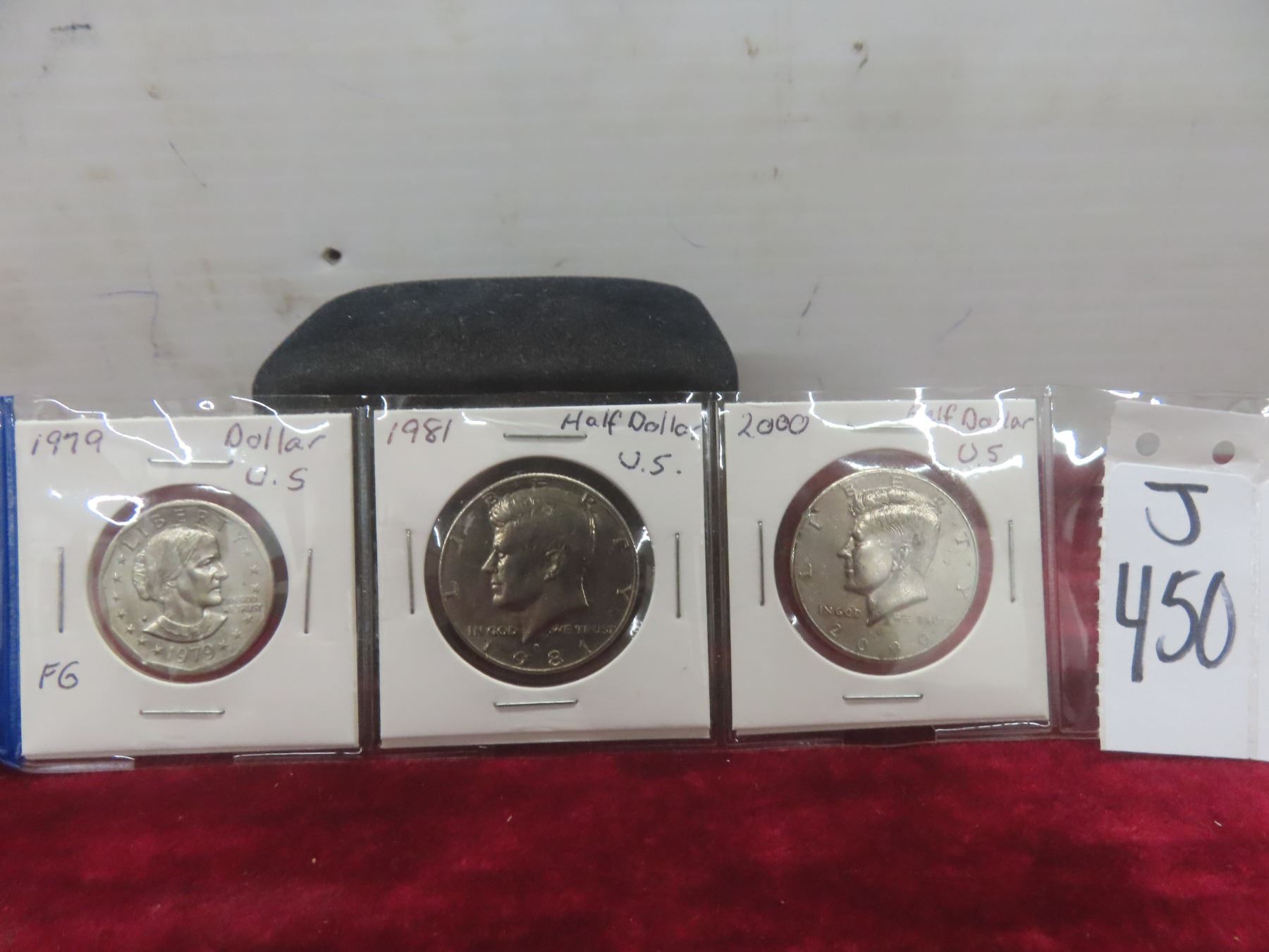 1979 U.S. $1 Coin and Two U.S. Half Dollar Coins (1981 & 2000)