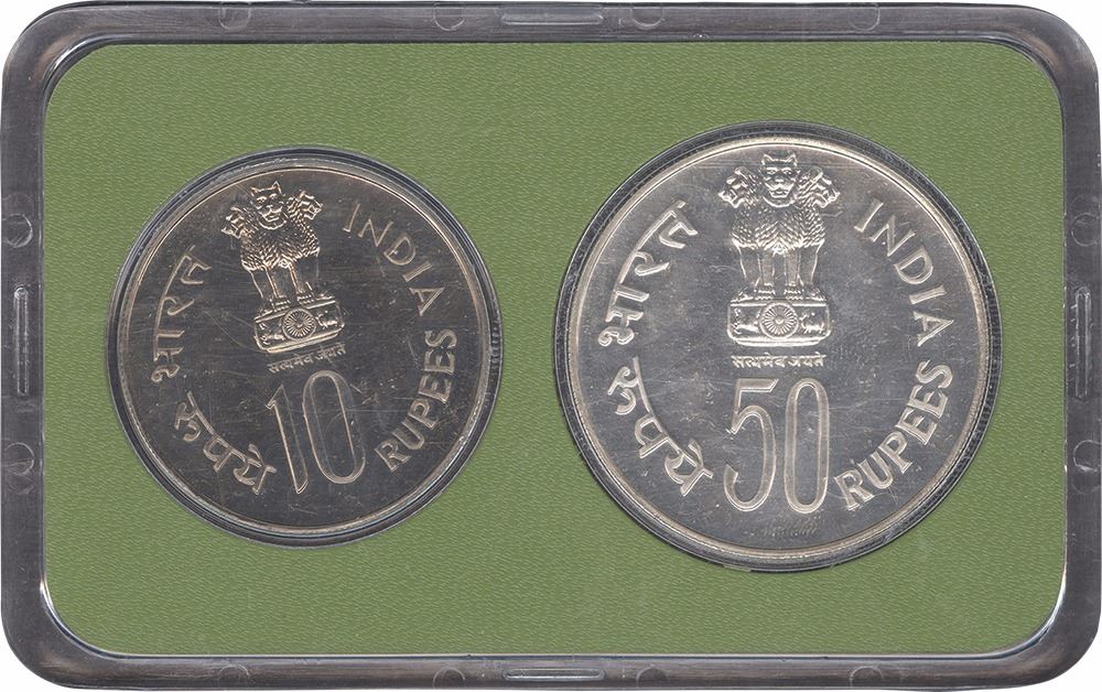 1979,UNC Set,Happy Child Nation's Pride,50 Rupees and 10 Rupees, Bombay Mint, (RB # 74), intact condition of the certificate and cover with acrylic case,Rare.