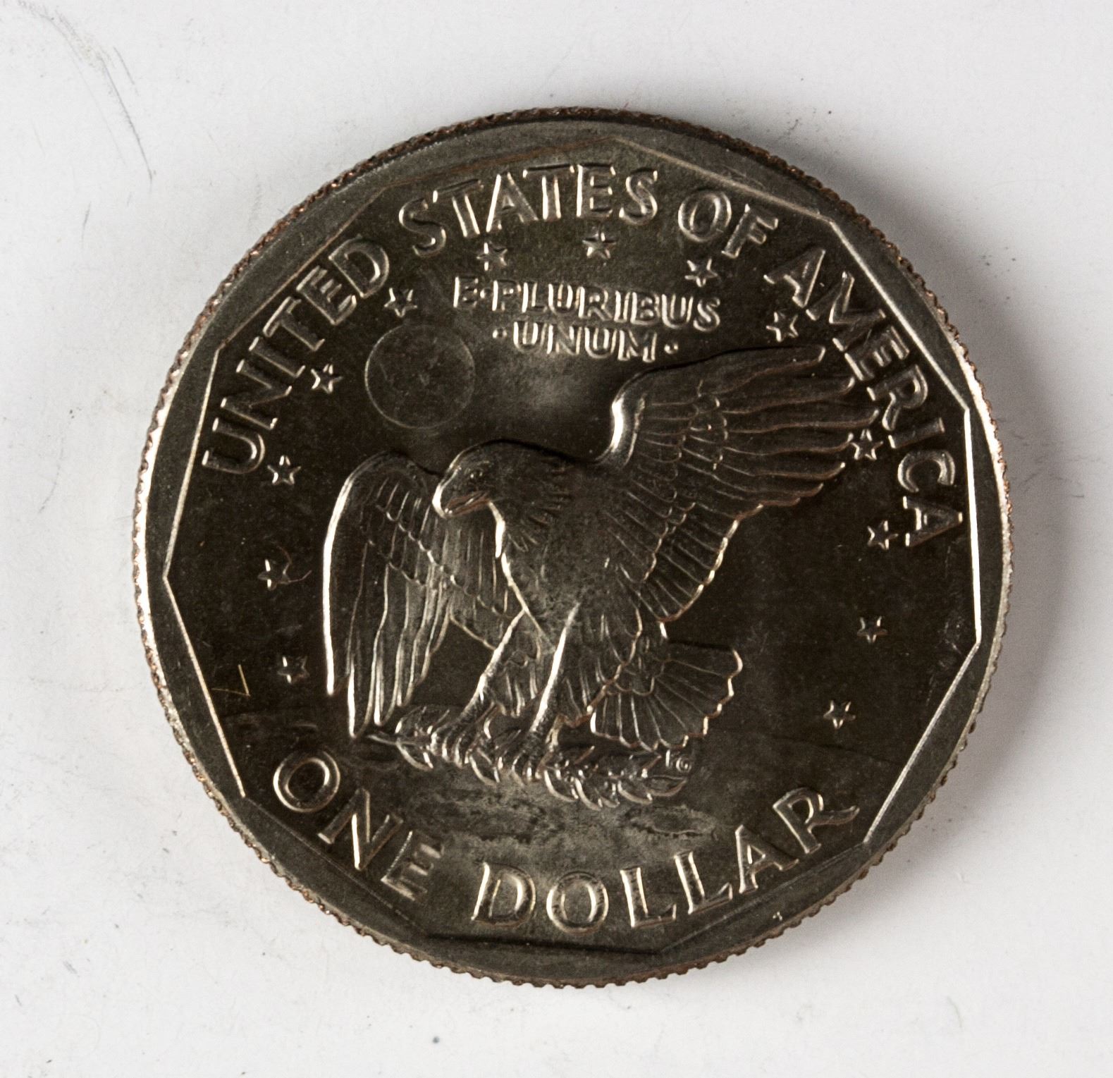 20 pieces of uncirculated 1979 United States 1 Dollar copper-nickel coin; obverse engraved ortrait of Susan B Anthony, a pioneer for women's rights, lettering LIBERTY 1979, IN GOD WE TRUST; reverse engraved the Apollo 11 Mission Insignia: an eagle holding an olive branch flying above the Moon, with the Earth in the background, lettering UNITED STATES OF AMERICA, E·PLURIBUS·UNUM·, FG, ONE DOLLAR; reeded edge; 2.1 cm, 192 grams (total)