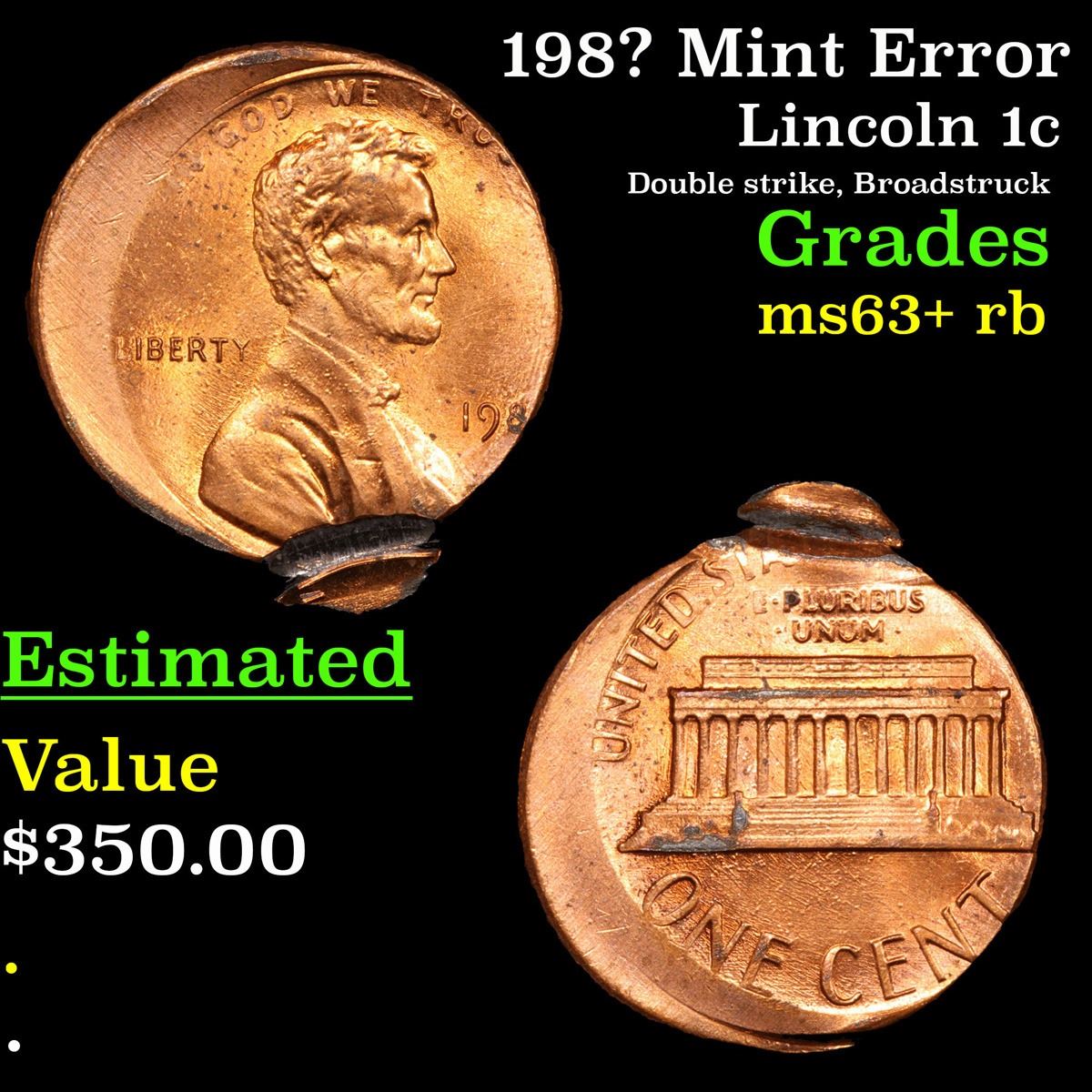198? Mint Error Double strike, Broadstruck . Lincoln Cent 1c Grades Select+ Unc RB. A Corey's Pick, Bid to Win Coin