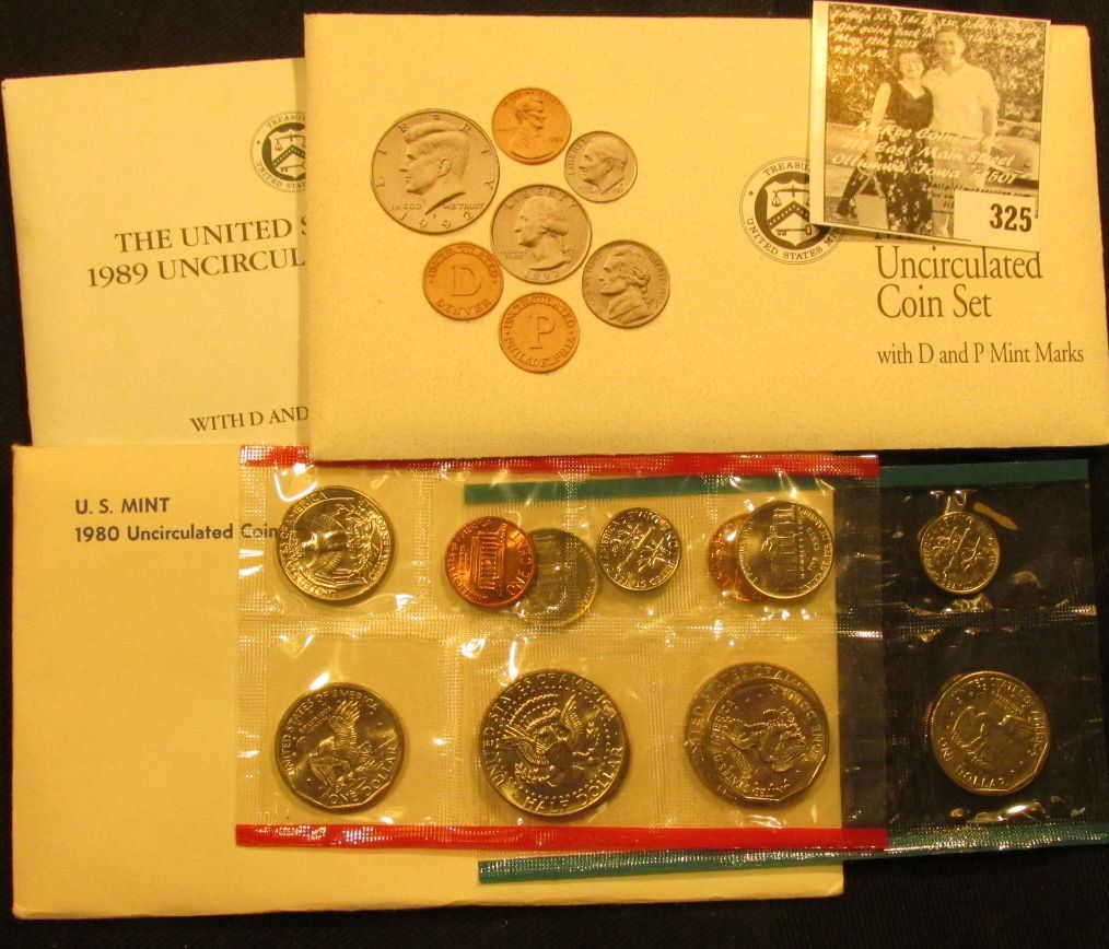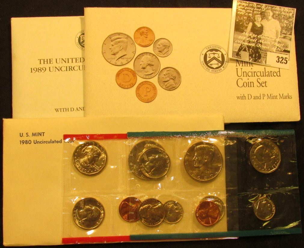 1980, 1989 & 1982 U.S. Mint Sets, all original as issued.