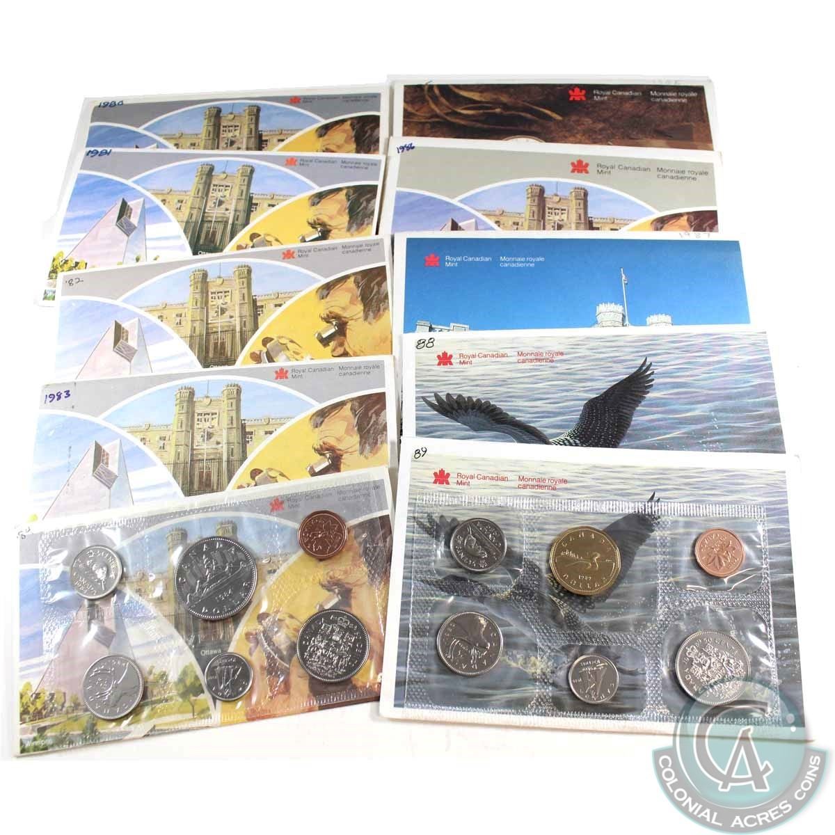 1980-1989 Canada Proof-Like Uncirculated Sets. You will receive one of each date from 1980-1989, Please note that some holders are worn and have writing on it. 10 pcs