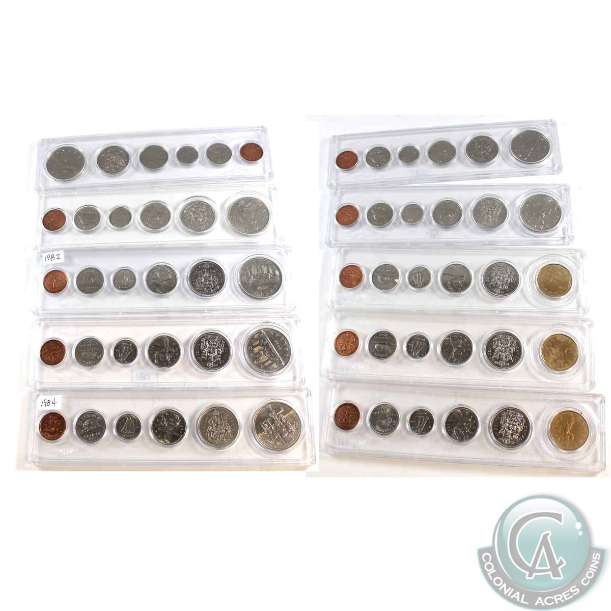 1980-1989 Canada Year Sets in hard plastic holder. You will receive one of each date from 1980 to 1989. 10 Sets