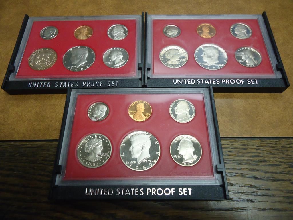 1980,81 & 82 US PROOF SETS NO BOXES