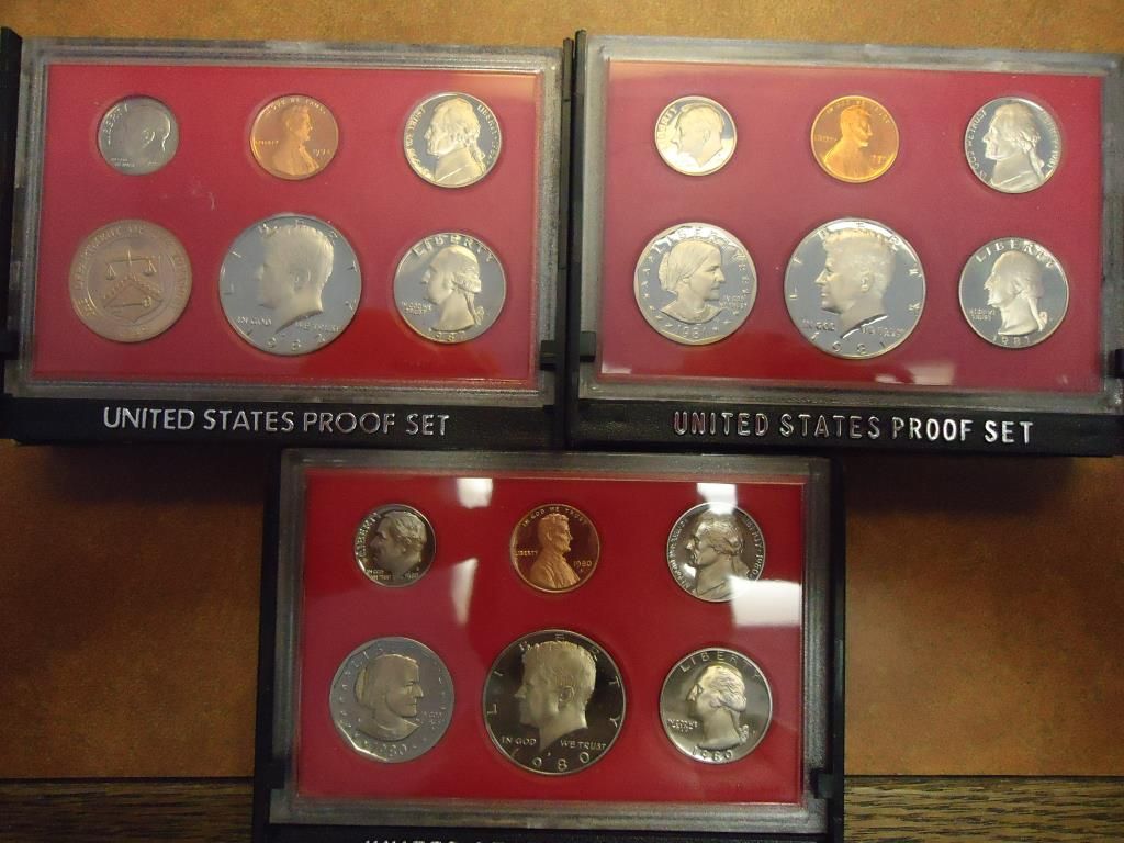 1980,81 & 82 US PROOF SETS WITH BOXES