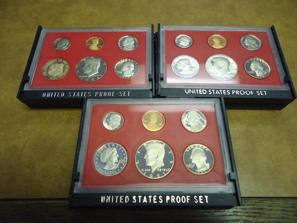 1980,81 & 82 US PROOF SETS WITH BOXES