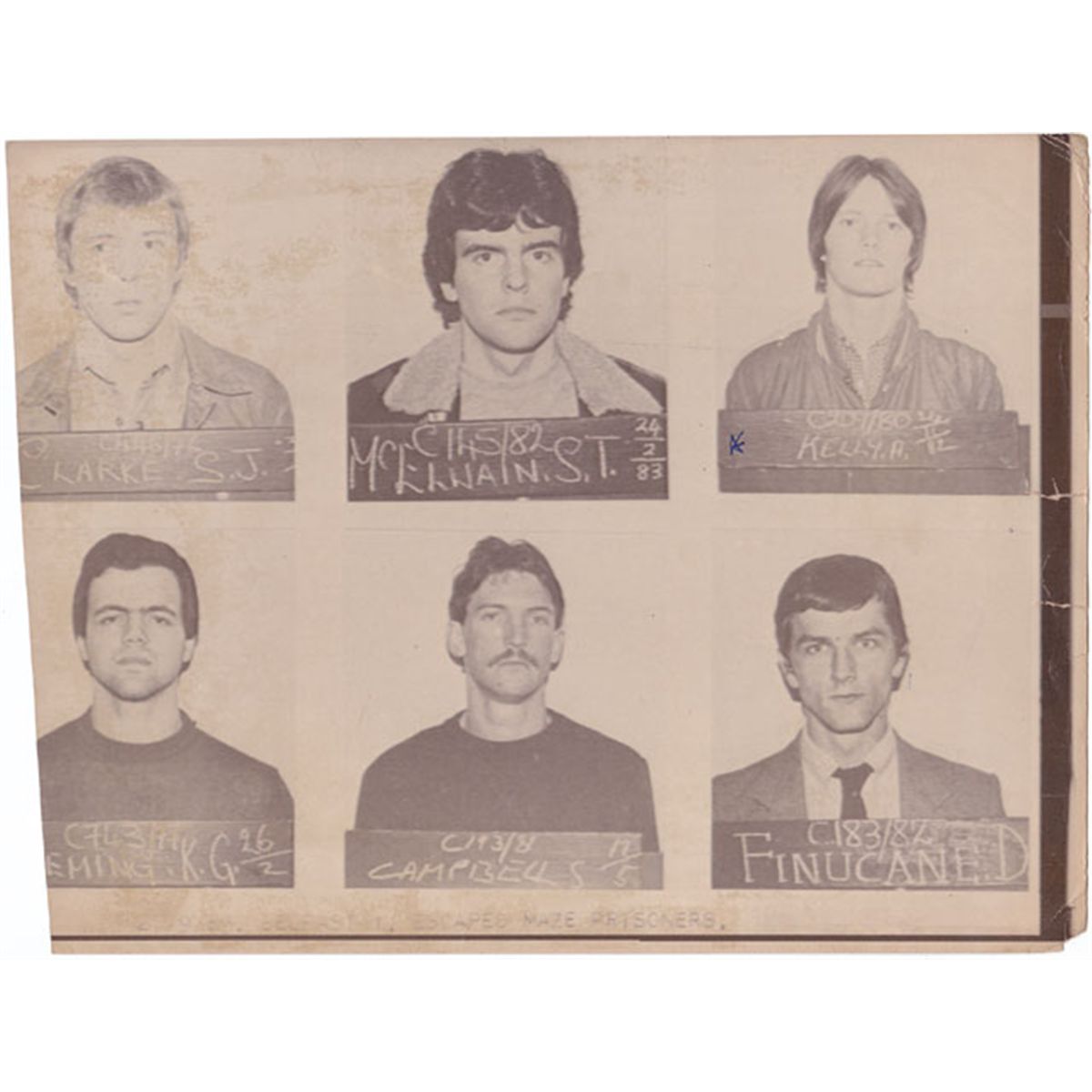 Including photographs of hunger strikers Brendan Hughes, Sean McKenna, John Nixon, Leo Green etc. Also funeral, prison scenes and mug shots of 1983 Maze Prison escapers (23 items)