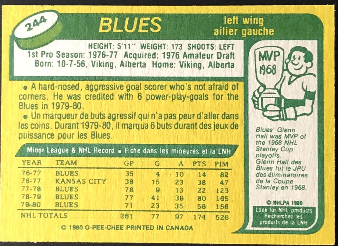 Card #244 NHL, hockey, vintage, OPC