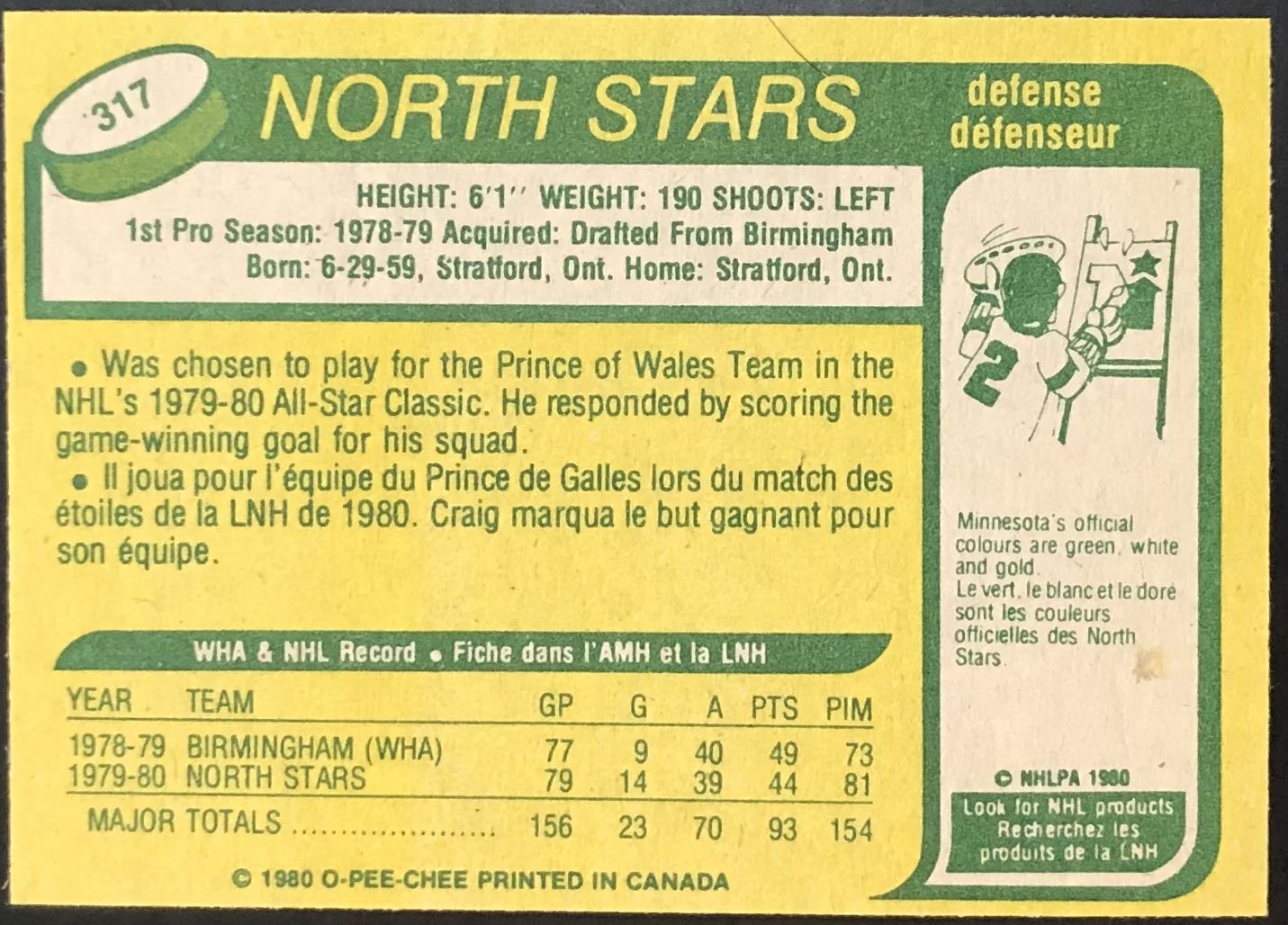 Card #317 NHL, hockey, vintage, OPC, rookie