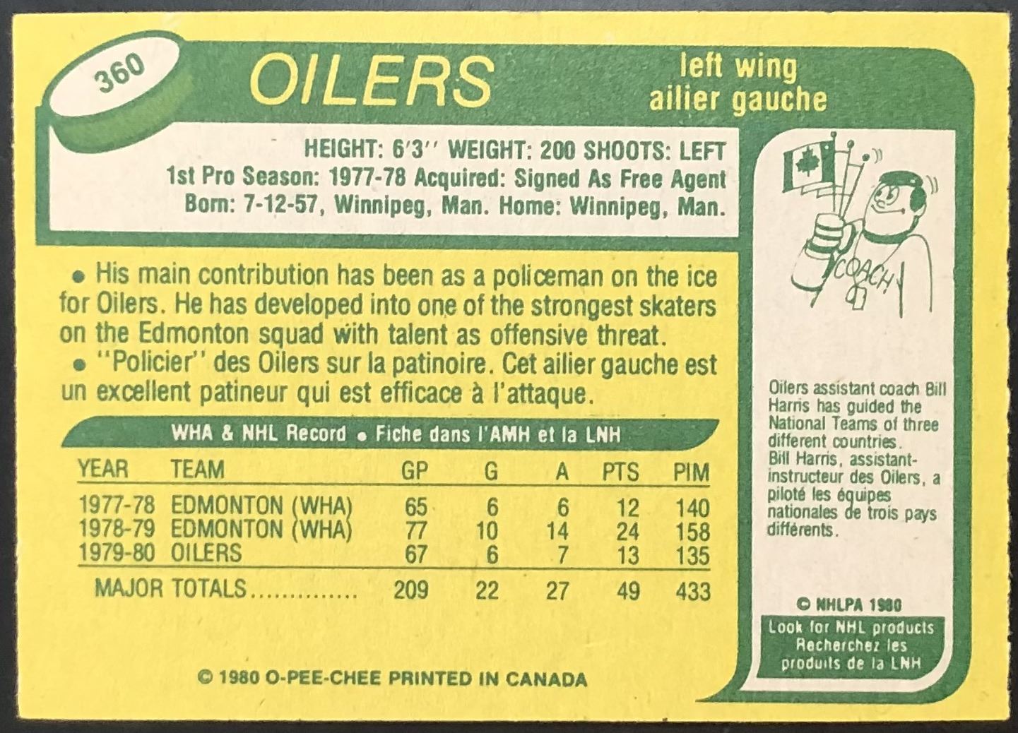 Card #360 NHL, hockey, vintage, OPC, rookie