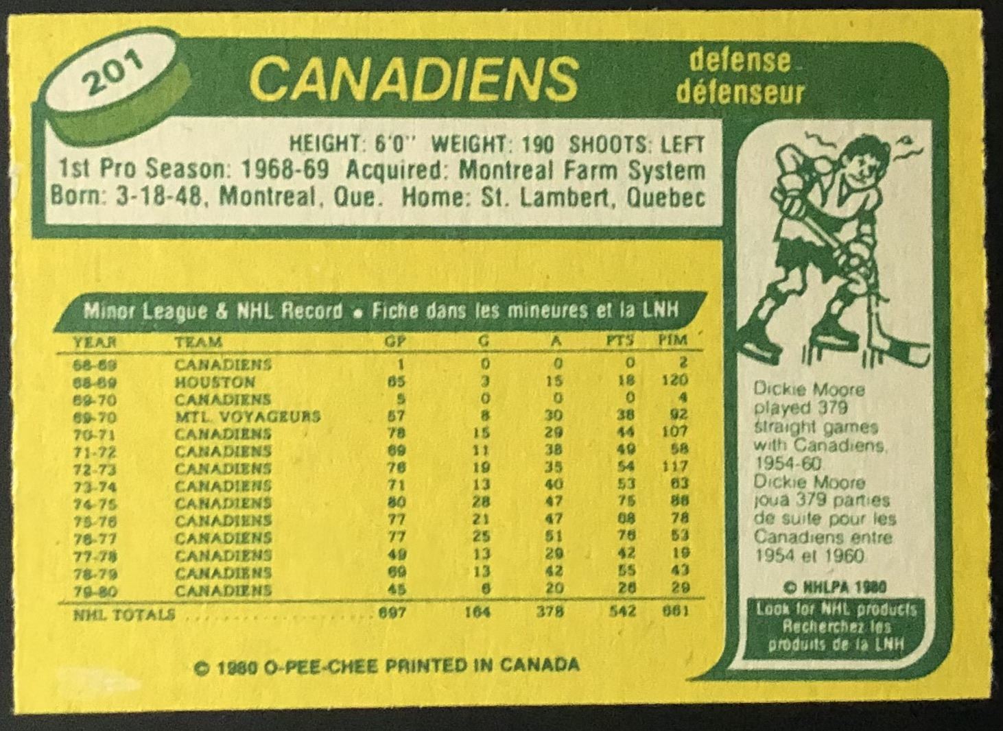 Card #201 NHL, hockey, vintage, OPC, hall of fame